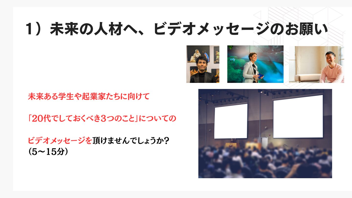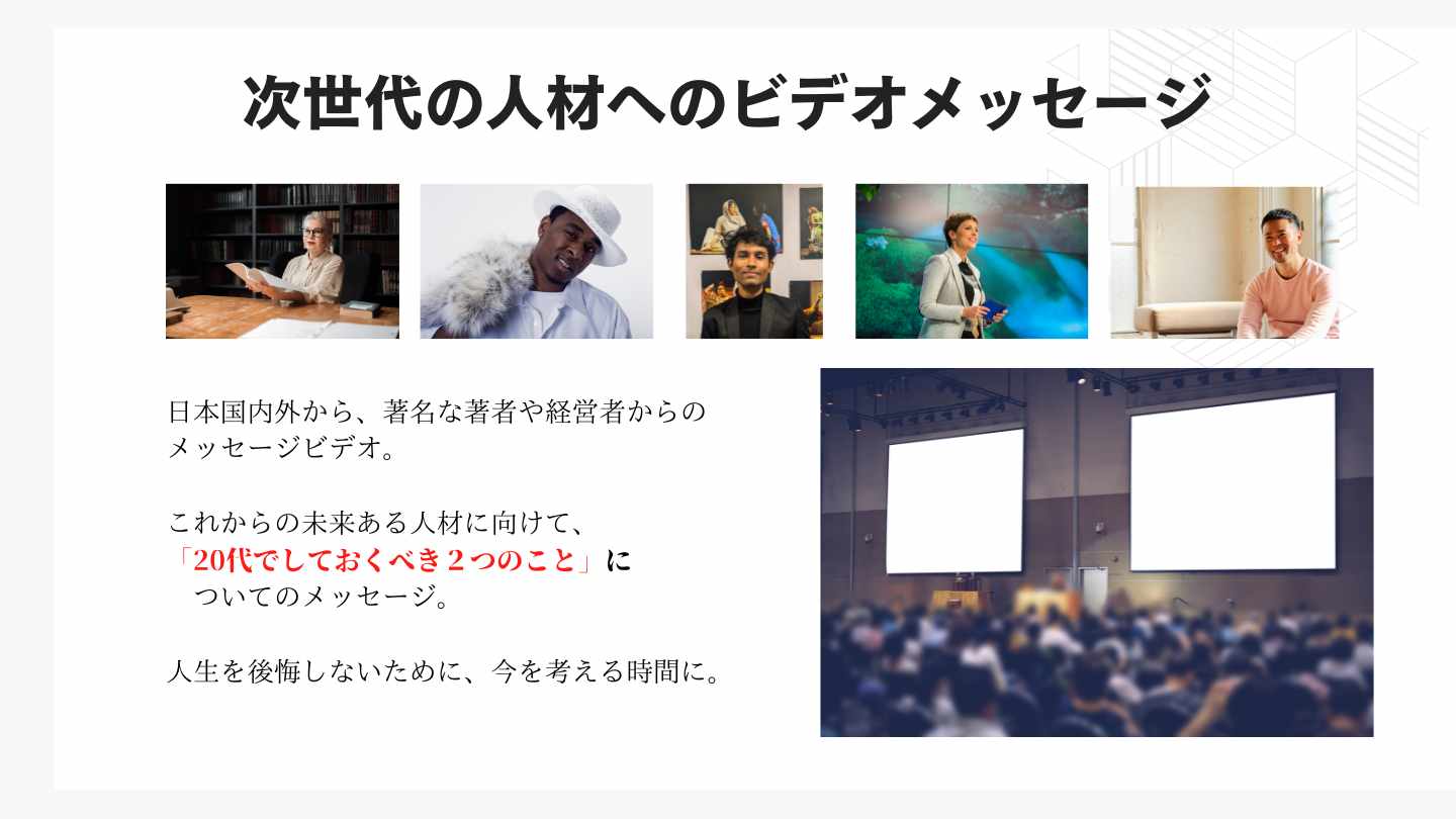 Q:メッセージビデオのテーマ、「20代ですべきこと」。なぜこのテーマを選びましたか?