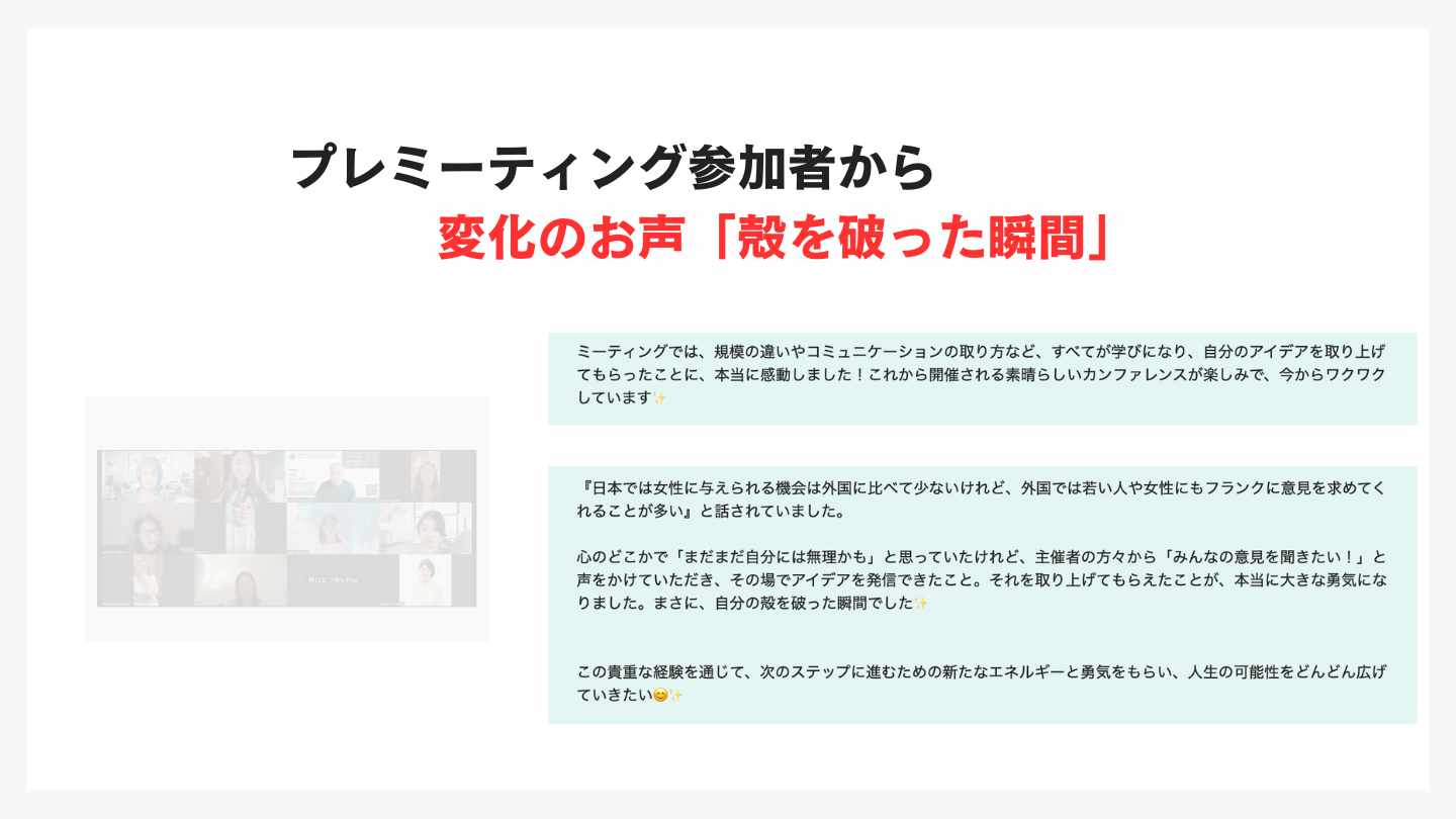 この時の感情をマージョリーに伝えたところ、「日本の女性たちに機会を作りたい」と、