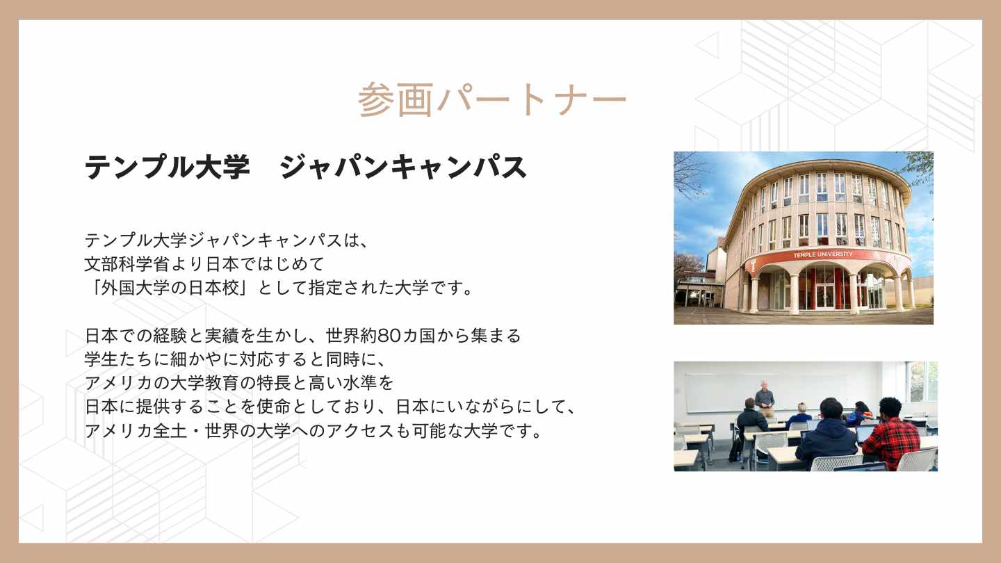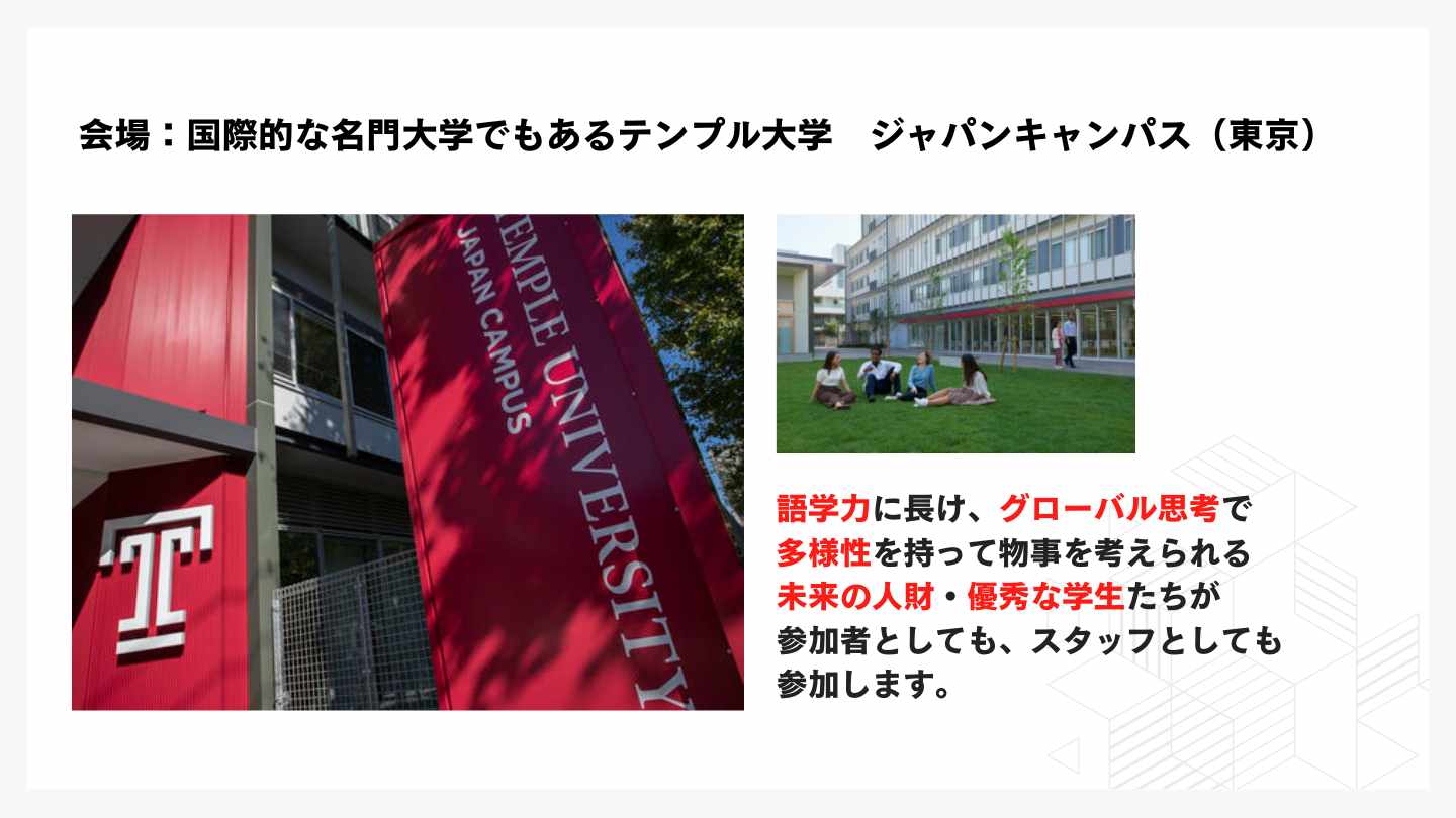 会場となるテンプル大学には、グローバルな思考を持つ優秀な人材もたくさんいます。